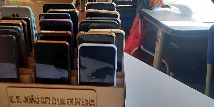 “No ato de matrícula, os pais assinavam um documento concordando com a proibição. Para os alunos que vinham de locais mais distantes e precisavam do celular para o deslocamento, criamos um sistema de armazenamento na supervisão. Eles deixam o aparelho ao chegar e retiram na saída”, explica.