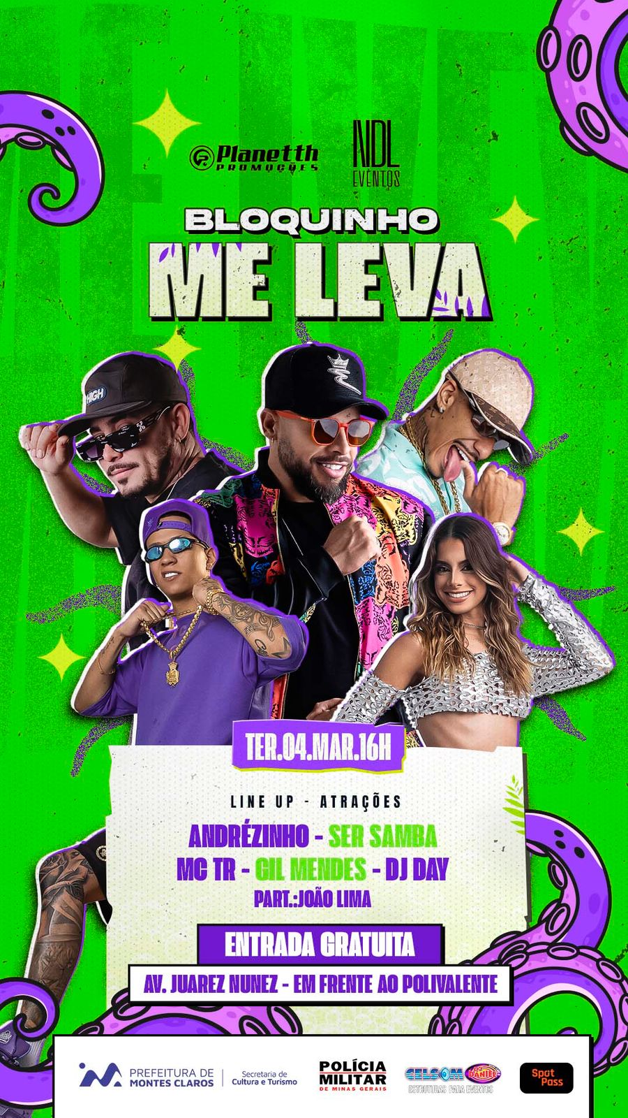 Com o apoio da Prefeitura de Montes Claros, Polícia Militar de Minas Gerais e parceiros, o Bloquinho Me Leva promete ser mais uma edição inesquecível, reforçando a tradição carnavalesca da cidade. Vista sua fantasia, reúna os amigos e venha fazer história nessa festa que já conquistou o coração dos montes-clarenses!