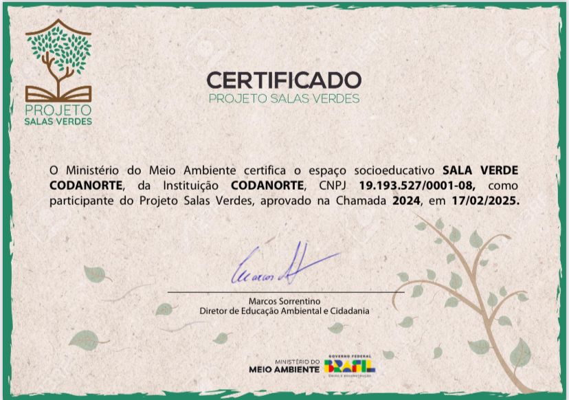Com este certificado, o CODANORTE ganha maior credibilidade e visibilidade, facilitando a articulação com parceiros e a realização de atividades locais de educação e cidadania ambiental.