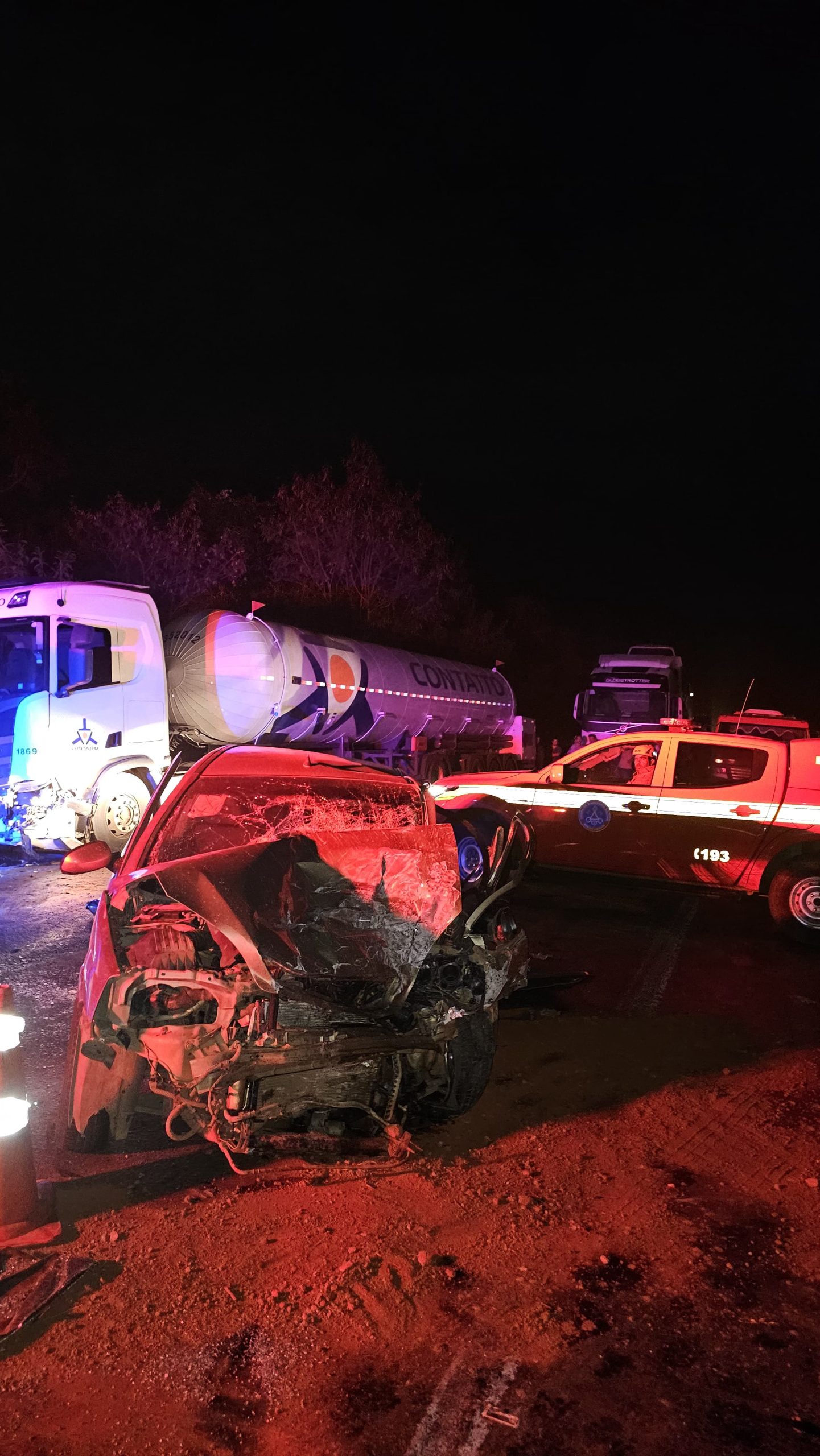 No final da tarde desta quarta-feira, 23, militares do Corpo de Bombeiros de Montes Claros e Samu Macro Norte, foram acionados para atender uma ocorrência de colisão frontal entre um carro de passeio e uma carreta, na BR-251, na altura do km 520, próximo ao Hotel Fazenda Bonjuá.