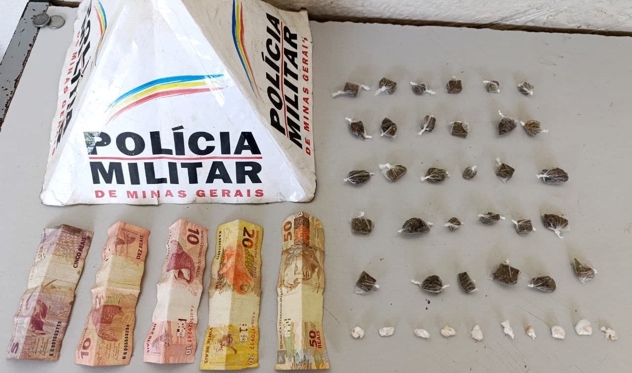 Na busca pessoal, foram localizados: 01 porção de substância semelhante a crack (com o homem); R$ 25,00 e 02 porções de substância semelhante a crack (com o jovem); e R$ 70,00 e 03 buchas de substância semelhante a maconha (com a adolescente).