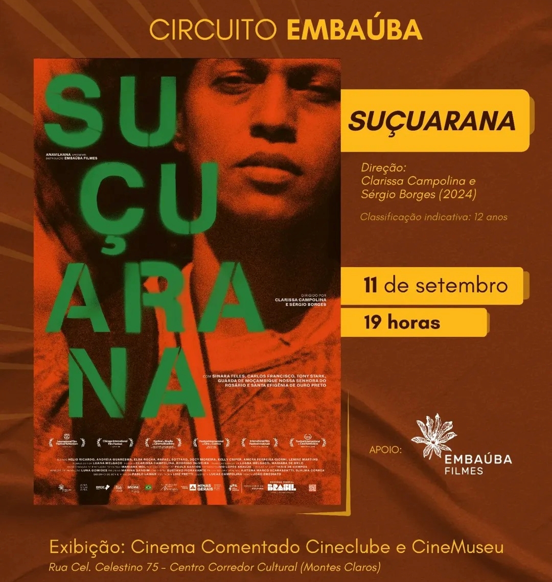 O filme “Suçuarana” será exibido amanhã, quinta-feira (11/09), no âmbito do Cinema Comentado Cineclube e CineMuseu. A iniciativa do Circuito Embaúba, em parceria com o Museu Regional do Norte de Minas (MRNM), vinculado à Universidade Estadual de Montes Claros (Unimontes), da Fulô Comunicação e Cultura e do Cineclube CineMaracas, além do apoio da Embaúba Filmes, apresenta a impressionante obra dos diretores Clarissa Campolina e Sérgio Borges. A sessão de cinema será às 19h, no próprio MRNM, situado na Rua Coronel Celestino, 75, Corredor Cultural Padre Dudu, no centro histórico da cidade.