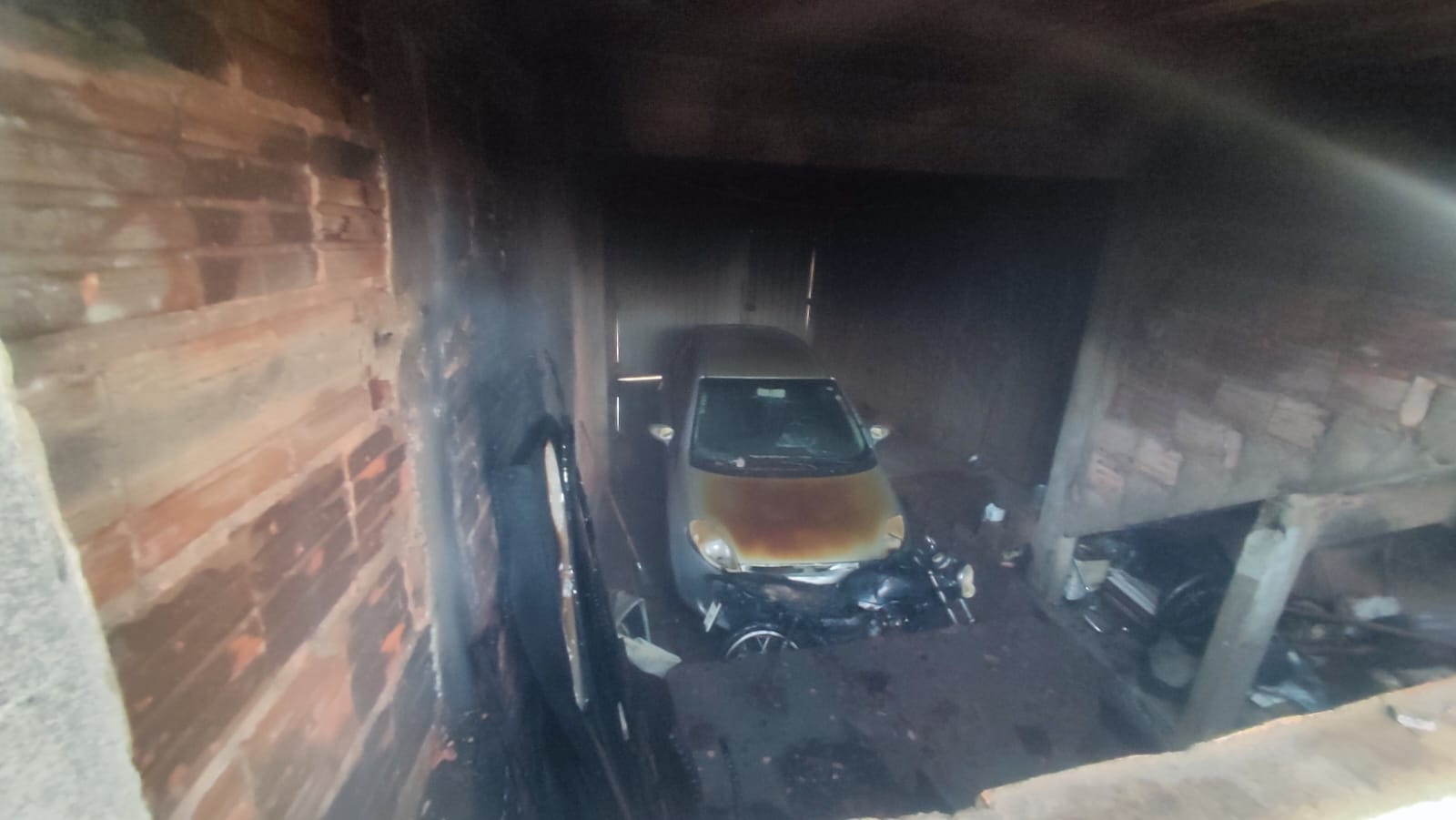 De acordo com o morador, de aproximadamente 50 anos que estava na residência no momento do ocorrido, o incêndio teve início na garagem da residência e rapidamente se espalhou neste ambiente, se propagando para umas madeiras e um sofá que estava armazenado neste ambiente. Um veículo teve o capô queimado e uma motocicleta teve danos no banco, retrovisor e painel. Ele informou não saber como o incidente teria começado. O morador, não sofreu ferimentos. O mesmo relatou que acordou assustado e percebeu a fumaça vindo da garagem da residência.
