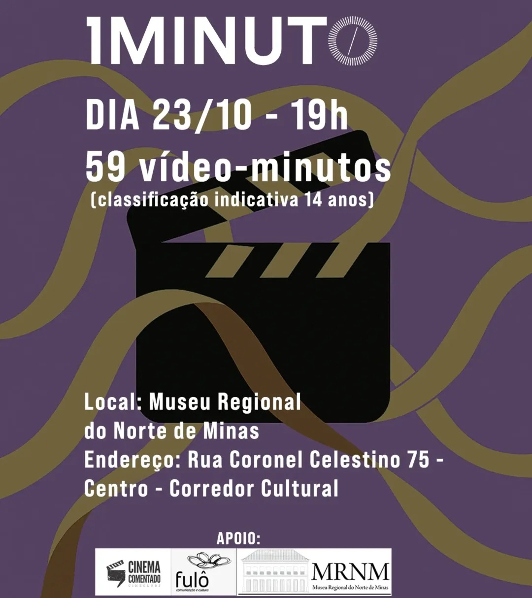 O Museu Regional do Norte de Minas (MRNM), vinculado à Universidade Estadual de Montes Claros (Unimontes), apresenta, na próxima quinta-feira (23/10), às 19h, a Mostra Melhores Minutos de 2024. A coletânea especial dos filmes premiados na edição do ano passado do Festival Permanente do Minuto ocorre em parceria com o Cinema Comentado Cineclube e o CineMuseu. A iniciativa, que se destina a pessoas de 14 anos acima, será na sede do MRNM, localizada na rua Coronel Celestino, 75, Corredor Cultural Padre Dudu, centro histórico da cidade.