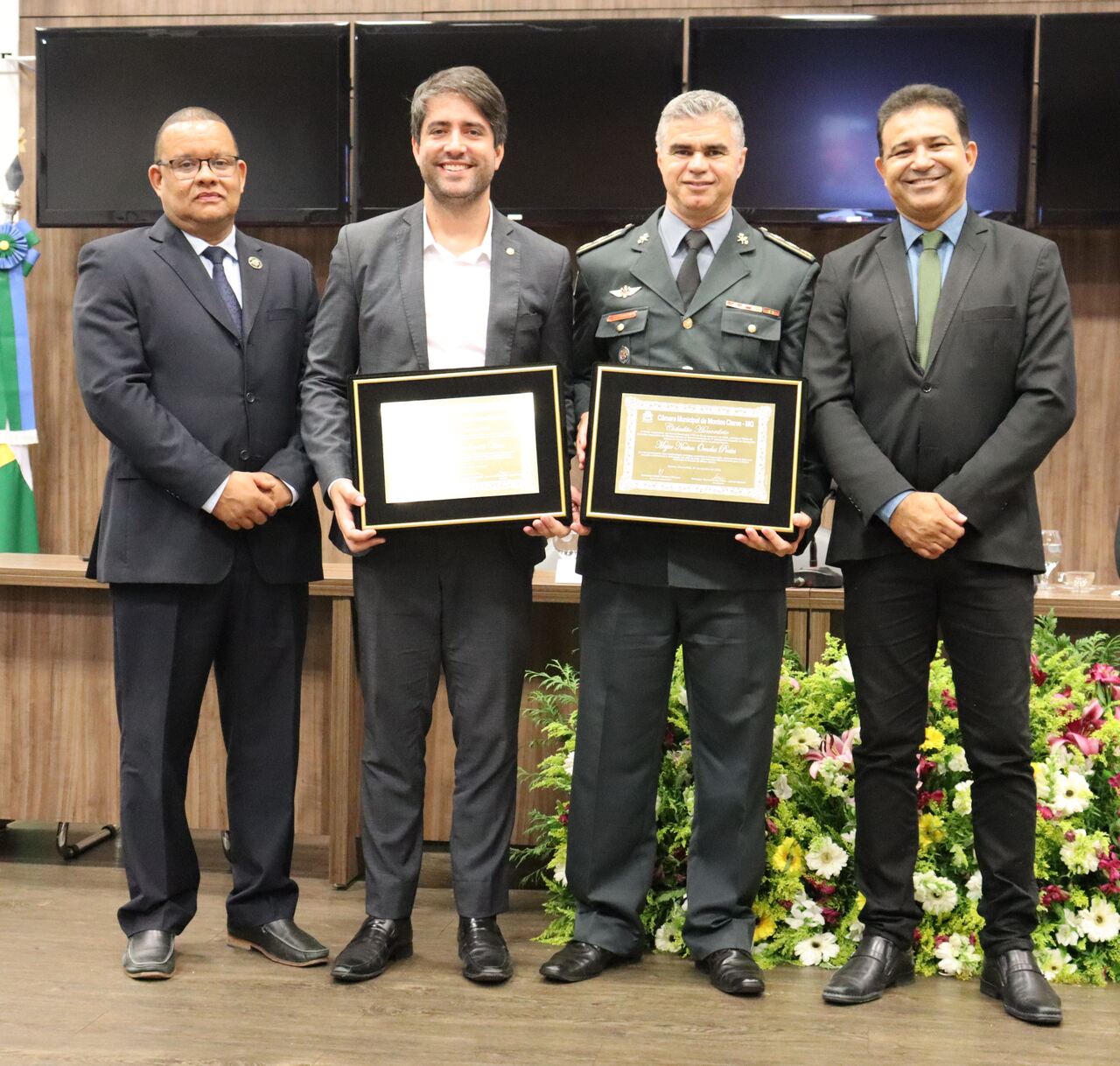 A Câmara Municipal de Montes Claros realizou, na tarde desta sexta-feira (31), Sessão Especial de Homenagem para a entrega dos Títulos de Cidadão Honorário ao Secretário de Estado de Saúde de Minas Gerais, Fábio Baccheretti Vitor, e ao Major BM Norton Ornelas Prates, Subcomandante da 3ª Companhia Especial de Operações Aéreas do Corpo de Bombeiros Militar de Minas Gerais.