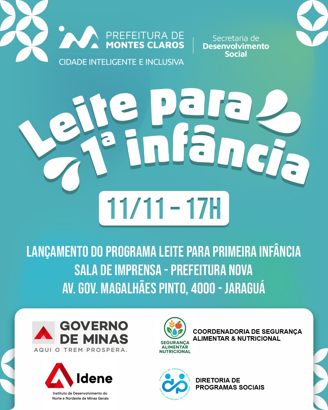 O projeto, uma iniciativa do Governo de Minas, com apoio da Prefeitura de Montes Claros, através da Secretaria Municipal de Desenvolvimento Social, e do Instituto de Desenvolvimento do Norte e Nordeste de Minas Gerais (IDENE),  tem o objetivo de garantir nutrição adequada e desenvolvimento saudável a criança de 2 a 6 anos em situação de vulnerabilidade social.