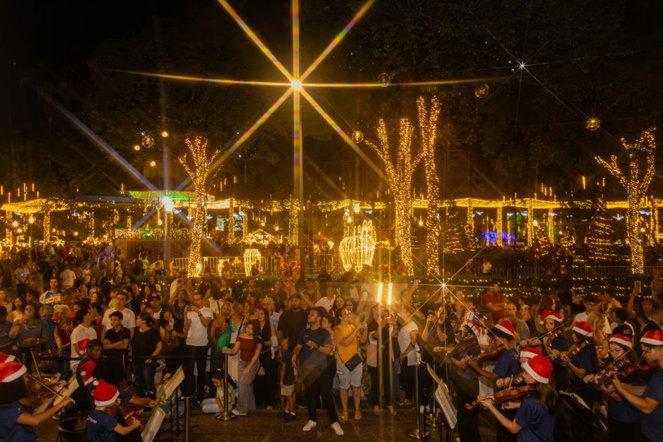 No entanto, o destaque da noite ficou por conta do espetáculo, dedicado aos temas natalinos. A escolha das canções conversou diretamente com o ambiente externo, já que a Praça da Liberdade se encontra decorada para as festividades de fim de ano.