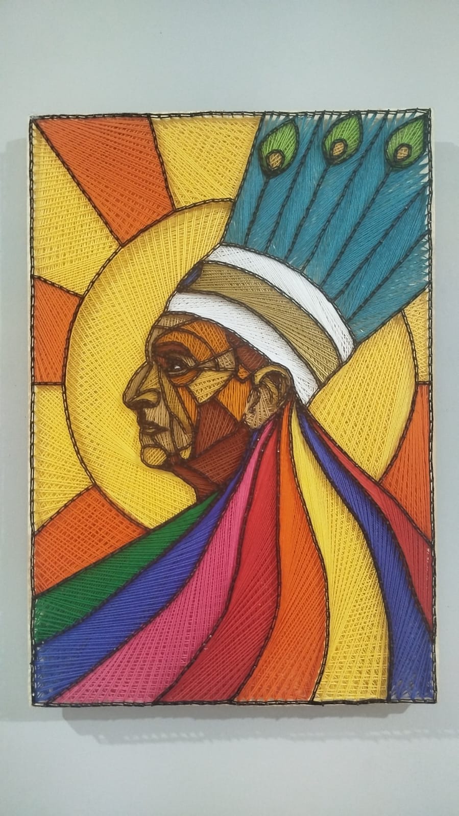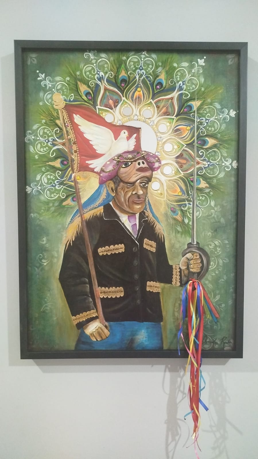 Um dos destaques da mostra é a obra do artista Marcos Barros, que homenageia Mestre Zanza e as tradicionais Festas de Agosto. “A obra, O Sol de Zanza, é inspirada nos desfiles das Festas de Agosto, quando o Mestre Zanza comandava, sob o sol forte do Norte de Minas, a mais tradicional das festas populares de Montes Claros. Ela celebra o dançar e os festejos dos Catopês, Marujos e Caboclinhos e foi inspirada no sol, astro maior do nosso sistema solar, e no Mestre Zanza, astro rei da festa folclórica que comandou por mais de 70 anos o 1º Terno de Catopês de Nossa Senhora do Rosário. As linhas representam as fitas coloridas, que dançam ao vento, os pregos, a resistência e a fé. A obra nos leva a refletir sobre como a identidade de um povo se mantém preservada pelas tradições e manifestações populares”, destaca o artista.