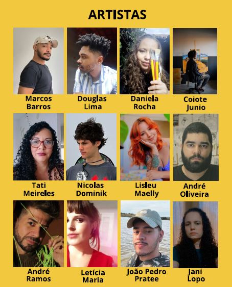 Os artistas selecionados para a exposição foram: André Oliveira, André Ramos, Coite Junio, Daniela Rocha, Douglas Lima, Jani Lopo, João Pedro Prates, Letícia Maria, Lisley Maelly, Marcos Barros, Nicolas Dominik e Tati Meireles.