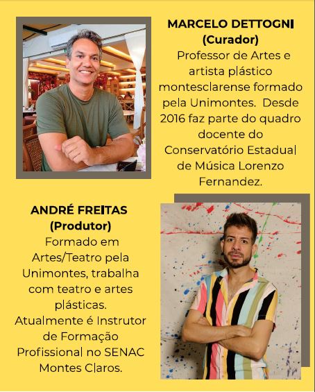 Formada por 12 artistas montes-clarenses, a exposição presta homenagem a importantes nomes da história e da cultura local, sendo Cyro dos Anjos, Hermes de Paula, Darcy Ribeiro, Mestre Zanza, Amelina Chaves, Marina Lorenzo Fernândez, Zezé Colares, Téo Azevedo, Socorro Cacicona, Mestre Nenzinho, Yara Tupinambá e Padre Henrique Munáiz.