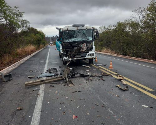 Vítima foi estabilizada e encaminhada ao hospital após colisão envolvendo veículos de carga na rodovia.
