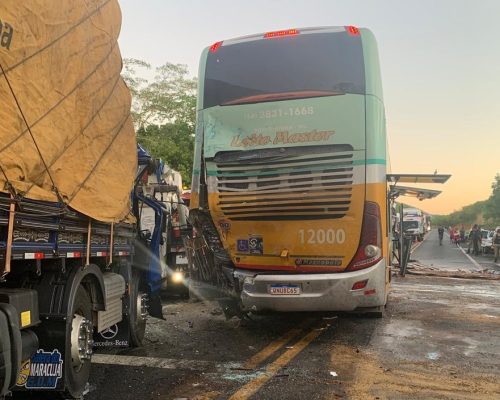 Vítima foi estabilizada e encaminhada ao hospital após colisão envolvendo veículos de carga na rodovia.