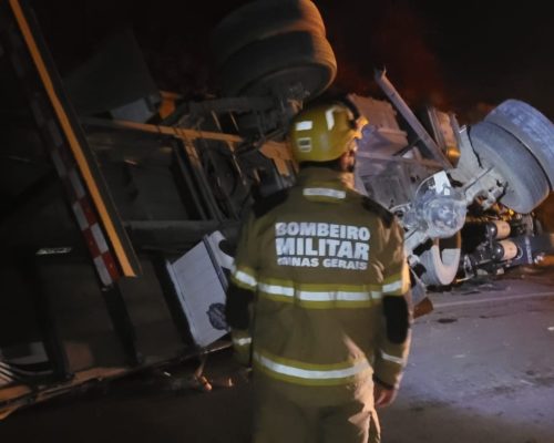 Bombeiros atende ocorrência de capotamento/ tombamento de caminhão na BR 251, KM 477, na serra de Francisco Sá