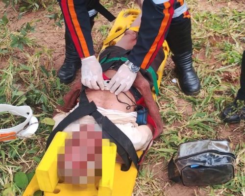Quando foi encontrado, o homem estava caído, debilitado e apresentando um quadro de desidratação severa, embora estivesse consciente, porém desorientado.